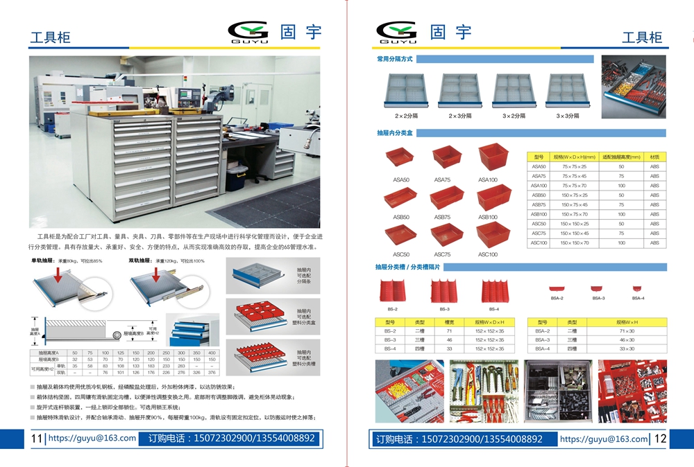 工具柜的介紹   工具柜適用于工具、刀具、零部件在生產(chǎn)現(xiàn)場中的定置管理,使您的物品存取工作真正做到準時、準確、高效、低耗。   平時見到的工具柜,通常用來放置工具,只是將絕緣工具規(guī)整而已,現(xiàn)在推出了除了普通工具柜的放置功能,更增加了除濕和高溫預警功能,是一款實用性相當高的工具柜。   工具柜的特點:   1.高強度的結構設計和特殊的噴粉表面處理工藝,能適應工廠較復雜的工作環(huán)境。   2.裝有軸承的導軌,保證單個抽屜承受額定載荷時亦能輕松順暢開合。   3.抽屜內(nèi)自由調節(jié)的隔板,能使您隨意分隔儲物空間。   4.全寬型鋁合金抽屜把手及可換的標簽,美觀,方便,實用。   5.先進的抽屜安全扣設計,保證抽屜在關閉后不會意外滑出。   6.配有安全擋板設計,保證抽屜打開后百分之百不會掉落。   7.采用具有國際先進水平的鎖具, 鎖具先進,只用一把鑰匙就能鎖上的抽屜,保證物品安全。   8.可自由選擇配置不同高度的抽屜,充分滿足客戶的需求。   9.柜體底部墊腳,保護柜體在放置或移動時不受損壞,方便用叉車搬運。   10.多種表面顏色,滿足用戶整體布置的要求。   11.根據(jù)需要可自由選擇配置不同高度的抽屜,充分滿足生產(chǎn)現(xiàn)場的需要。   12.可以配置帶有防油膠墊的頂框,保護放置物品不受損害以及防止物品滑落。